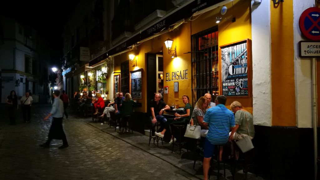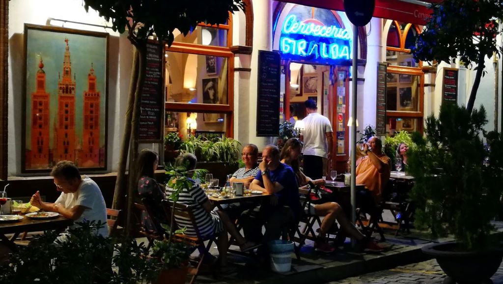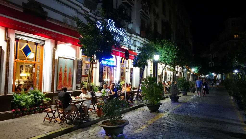 Calle Mateos Gago: This is one of the most popular and crowded streets in this quarter and in all of Seville. It's lined with 'tapas' bars and restaurants and leads into the heart of Santa Cruz. From here you can take the best photos of the Giralda, the views are unsurpassable. A warning: the ham legs hanging from the ceiling (pork, of course, we are in Spain) or displayed on the counters are common in many of the establishments on this street.