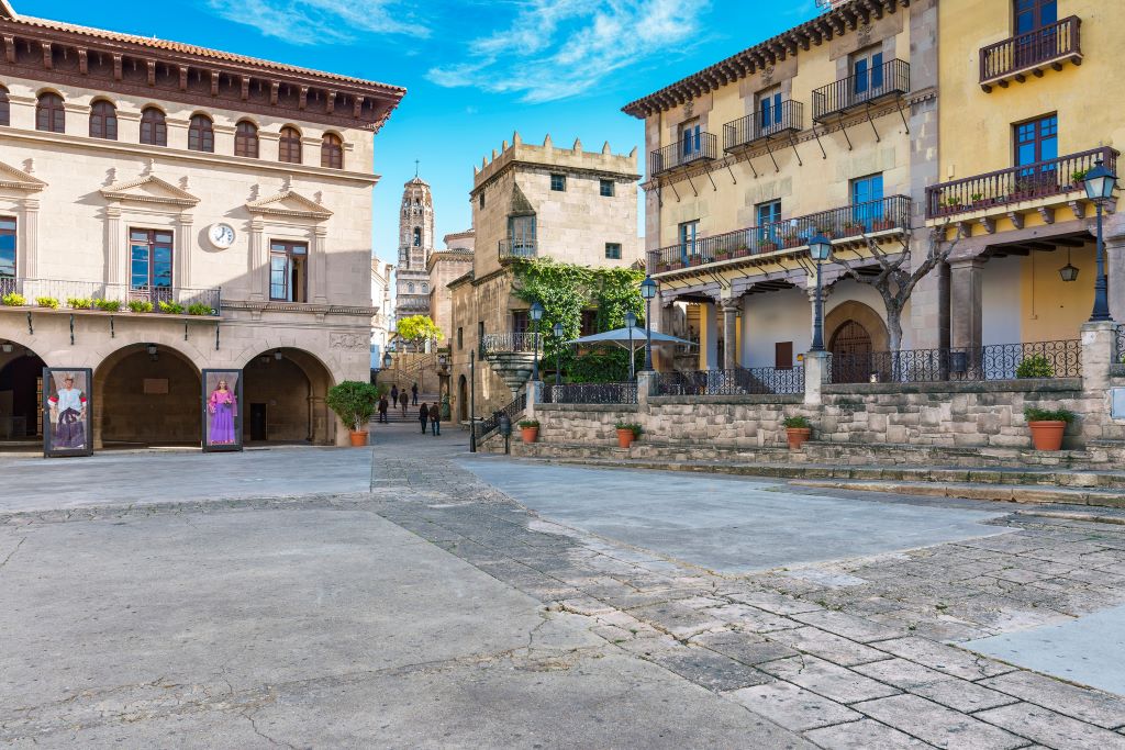 You can translate it as "Spanish Village", and that is precisely what Poble Espanyol is: a unique recreated village with a main square, several smaller squares, and streets filled with traditional houses –scale recreations of 117 buildings– showcasing various styles of Spanish architecture: Romanesque, Gothic, Mudejar, Renaissance, Baroque, and more. There are also gardens, fountains, medieval walls... Can you imagine a more complete and unique "trip"?